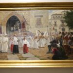 En esta IX edición de “La obra invitada” contamos con la icónica representación pictórica de Martínez Montañés contemplando la salida de Jesús de la Pasión, un óleo sobre lienzo realizado hacia 1900 por el pintor Joaquín Turina y Areal (1847-1903). El cuadro, de impecable factura, forma parte del patrimonio artístico custodiado por la Archicofradía Sacramental de Pasión, que lo conserva en su sala capitular.