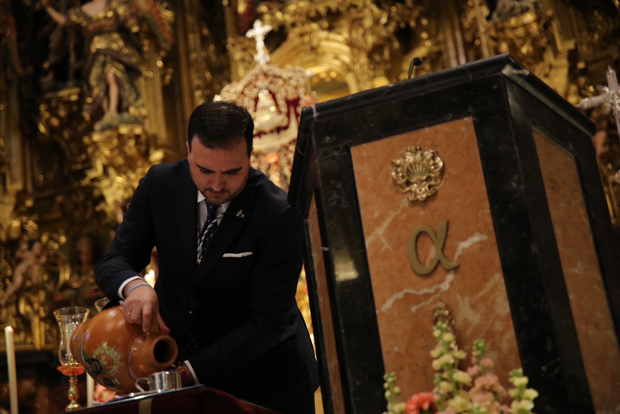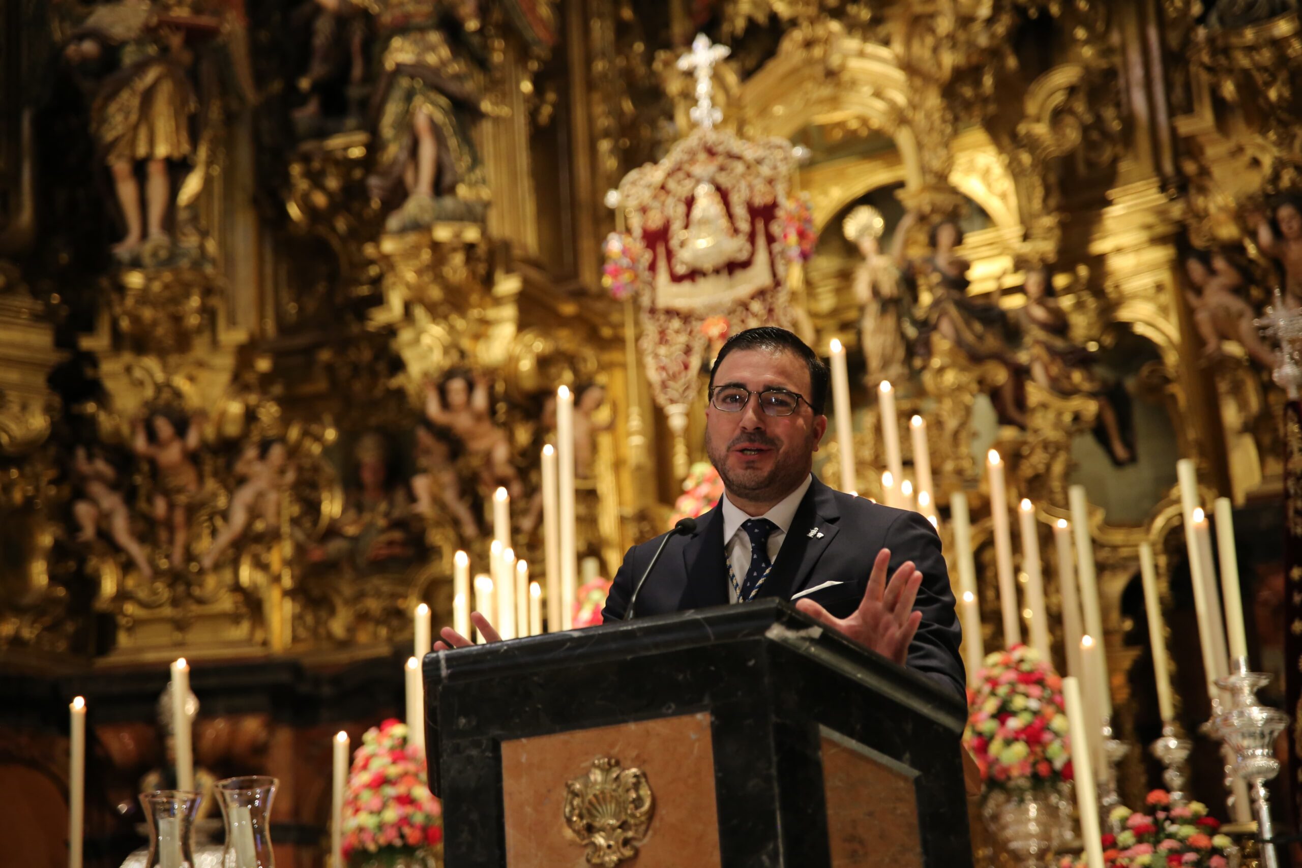 La intervención avanzó entre evocaciones, vivencias personales y referencias a las distintas devociones gloriosas de la ciudad, hasta desembocar en un final de marcado acento trianero. Allí, la figura de la Divina Pastora de Triana emergió como eje sentimental del pregón, protagonizando una clausura vibrante en la que el pregonero proclamó su amor y devoción con un tono apasionado y confesional, poniendo el broche a una exaltación que encontró en María su principio y su destino.