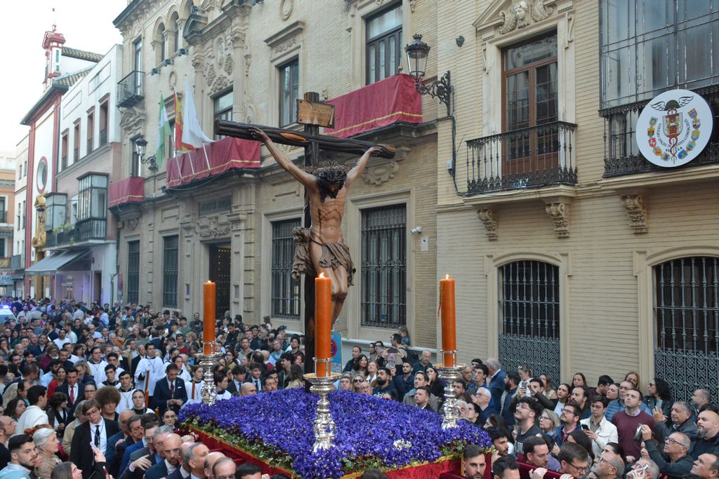 Les mostramos una selección de imágenes del Vía Crucis de las Cofradías de Sevilla 2026, siendo presidido por la imagen del Santísimo Cristo de la Buena Muerte, titular de la Hermandad de la Hiniesta.