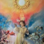 El Consejo de Hermandades y Cofradías de la ciudad de Sevilla ha presentado este lunes en la Capilla de Santa María de Jesús el cartel anunciador del Junio Eucarístico 2024, obra de Isabel Sola. Una obra que está realizado sobre tabla con tintas acrílicas de aerografía, pintura acrílica, acuarela, pasta de modelado y resina epoxi.