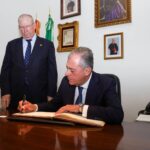 El alcalde de Sevilla, José Luis Sanz, ha realizado en la tarde de este viernes 23 su primera visita a la sede del Consejo General de Hermandades y Cofradías en la calle San Gregorio. Aquí, de la mano del presidente Francisco Vélez de Luna ha conocido las instalaciones y ha firmado en el libro de visitas de la institución cofradiera.