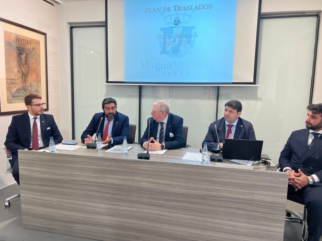 La sede del Consejo General de Hermandades y Cofradías de la Ciudad de Sevilla ha acogido este sábado la presentación de la procesión Magna Mariana que se celebrará el 12 de octubre en Jerez. Un acto al que han asistido los miembros de la Unión de Hermandades de Jerez, encabezado por su presidente José Manuel