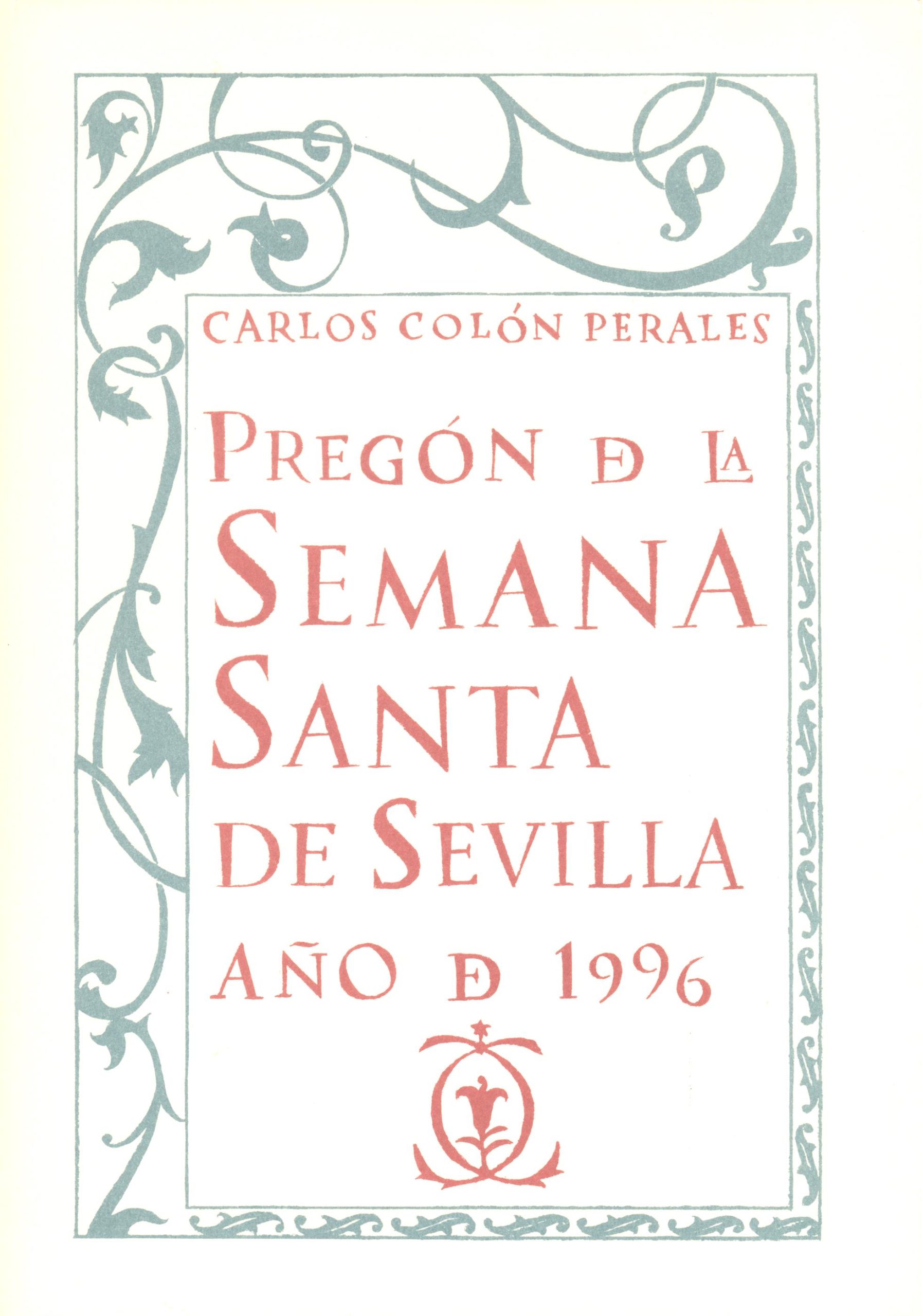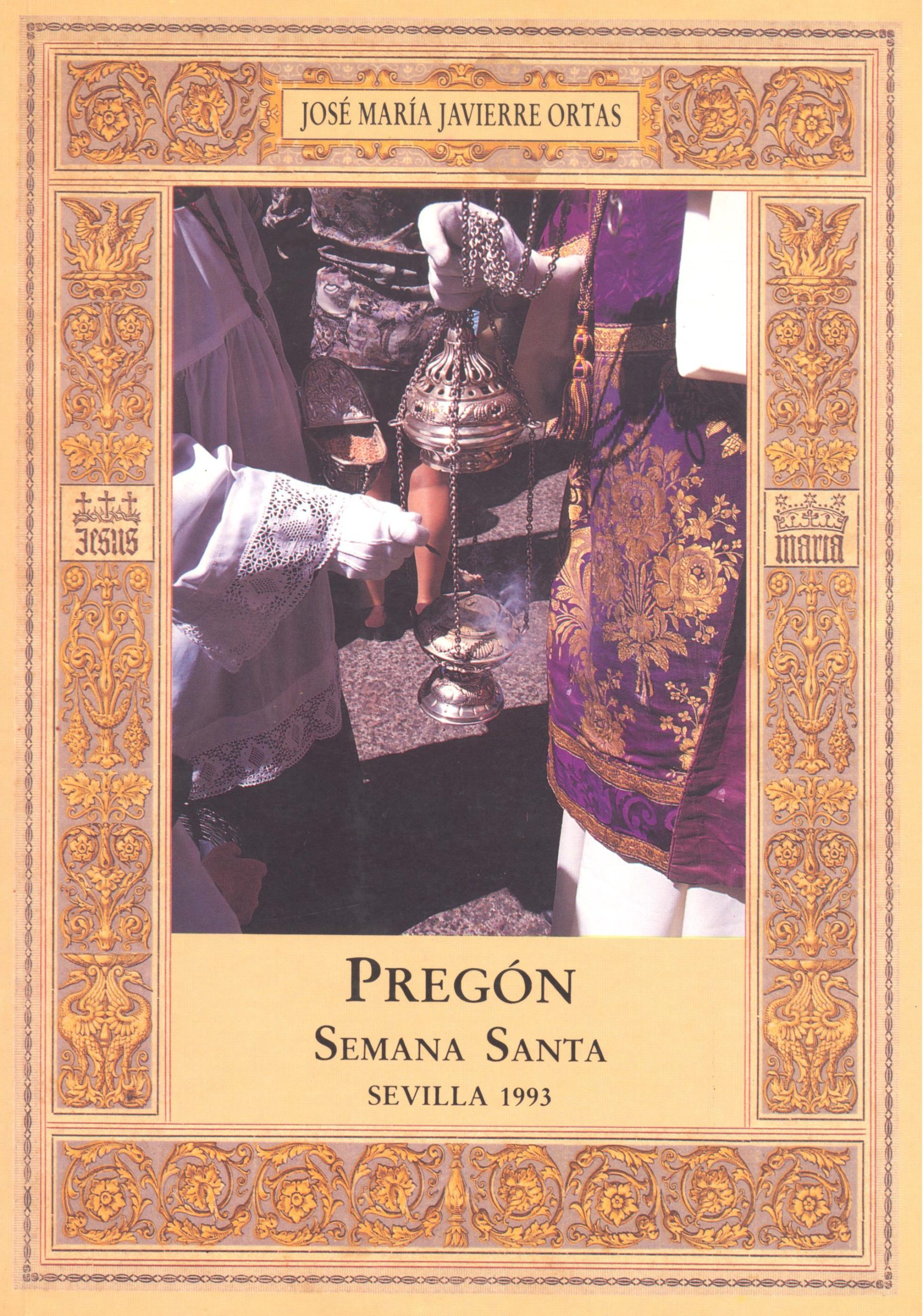 Pregones de Semana Santa 1991-2000 9 de abril de 2000 Joaquín Caro Romero Lugar: Teatro de la MaestranzaPresentador: Juan Ortega PérezMarcha que eligió el pregonero: “Coronación de la Macarena”Marcha que precedió al pregón: “Amarguras” 28 de marzo de 1999 Eduardo del Rey Tirado Lugar: Teatro de la MaestranzaPresentador: Adolfo Lama CoteloMarcha que eligió el pregonero: “Música del Silencio”Marcha que precedió al pregón: “Amarguras” 29 de marzo de 1998 Juan Carlos Heras Sánchez Lugar: Teatro de la MaestranzaPresentador: Adolfo Lama CoteloMarcha que eligió el pregonero: “Nuestra Señora del Valle”Marcha que precedió al pregón: “Amarguras” 16 de abril de 1997 Ignacio Montaño Jiménez Lugar: Teatro de la MaestranzaPresentador: Adolfo Lama CoteloMarcha que eligió el pregonero: “Guadalupe”Marcha que precedió al pregón: “Amarguras” 24 de marzo de 1996 Carlos Colón Perales Lugar: Teatro de la MaestranzaPresentador: Jaime Bretón BresnierMarcha que eligió el pregonero: “Corpus Christi”Marcha que precedió al pregón: “Amarguras” 2 de abril de 1995 Juan Foronda Blasco Lugar: Teatro de la MaestranzaPresentador: Jaime Bretón BresnierMarcha que eligió el pregonero: “Virgen de la Palma”Marcha que precedió al pregón: “Amarguras” 20 de abril de 1994 Vicente García Caviedes Lugar: Teatro de la MaestranzaPresentador: Jaime Bretón BresnierMarcha que eligió el pregonero: “Virgen de los Estudiantes”Marcha que precedió al pregón: “Amarguras” 28 de abril de 1993 José Mª Javierre Ortas Lugar: Teatro de la MaestranzaPresentador: Jaime Bretón BresnierMarcha que eligió el pregonero: “La Madrugá”Marcha que precedió al pregón: “Amarguras” 5 de abril de 1992 Antonio Moreno Andrade Lugar: Teatro Lope de VegaPresentador: Jaime Bretón BresnierMarcha que eligió el pregonero: “Aguas”Marcha que precedió al pregón: “Amarguras” 17 de marzo de 1991 José Mª Rubio Rubio Lugar: Teatro Lope de VegaPresentador: Manuel Fernández FloranesMarcha que eligió el pregonero: “Soleá dame la mano”Marcha que precedió al pregón: “Amarguras”