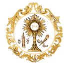 Su escudo consta de una Custodia en el centro, representando la faceta eucarística. A la derecha el emblema parroquial, una antorcha y dos palomas, como símbolo de la Purificación de Nuestra Señora y de la Presentación del Niño Jesús en el templo. A la izquierda, el logotipo diocesano, la Giralda entre dos jarras de azucenas.